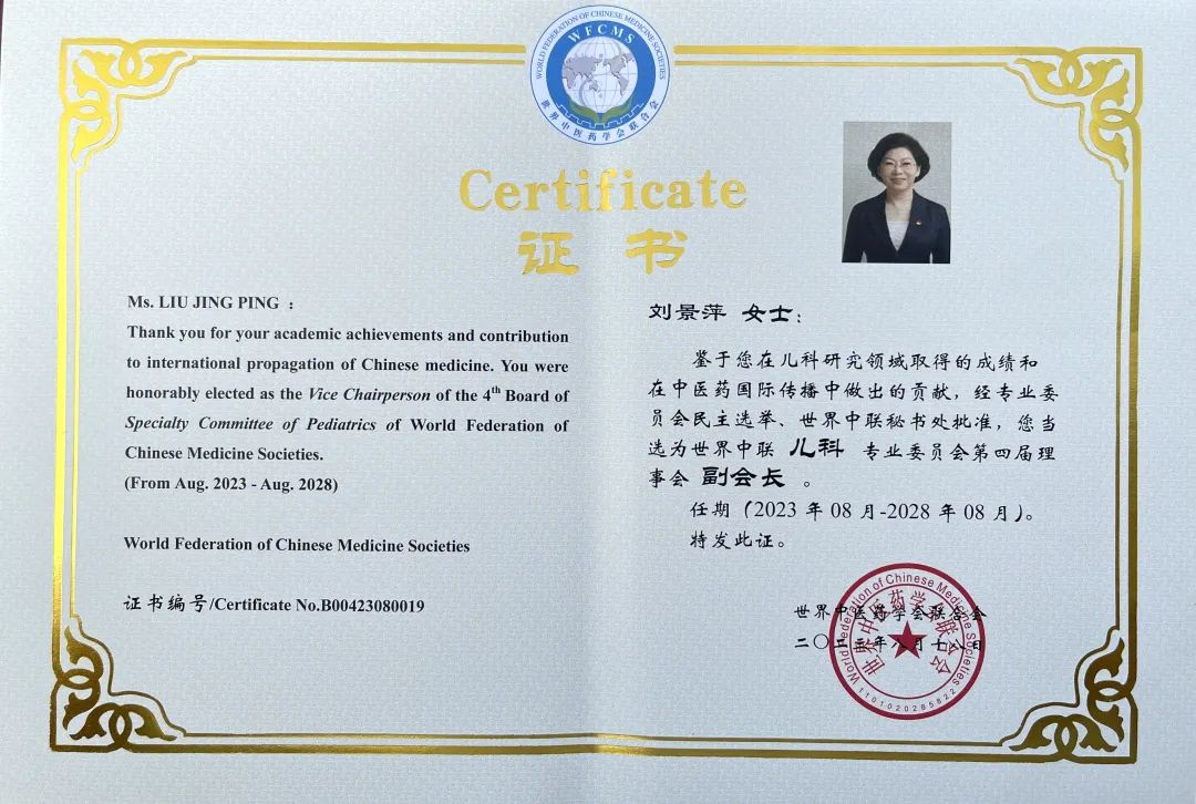 DG视讯药业集团党委书记、董事长刘景萍当选世界中医药学会联合会儿科专业委员会第四届理事会副会长